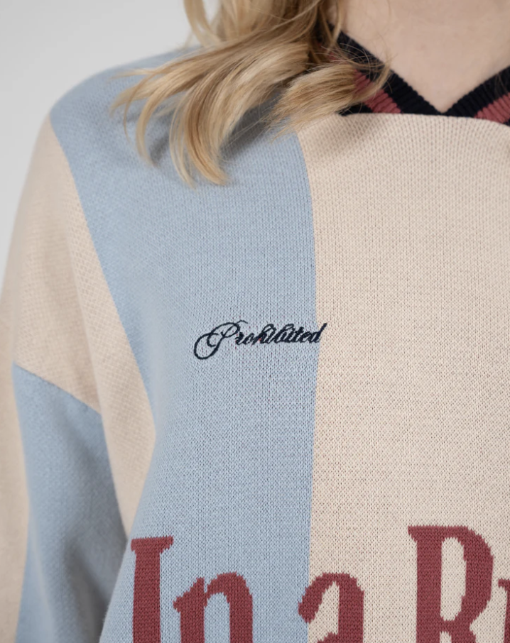 – „Prohibited“ Stickerei oben rechts auf der Brust