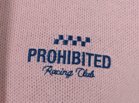 „Prohibited Racing Club“ Stickerei auf der linken Brustseite