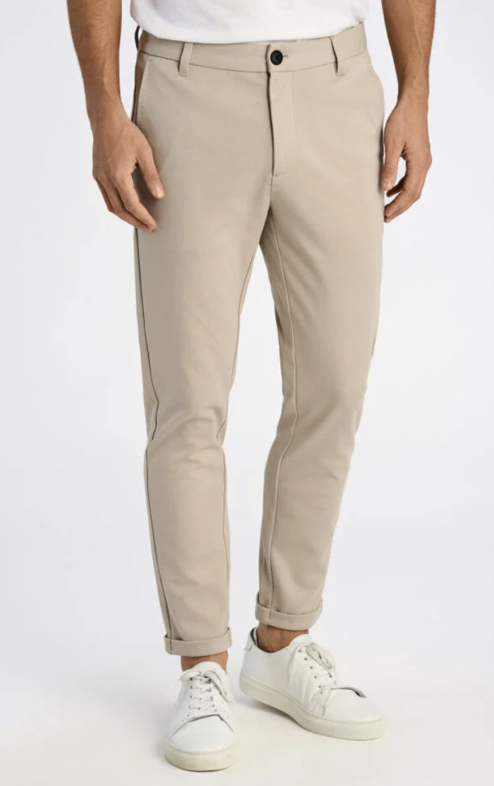 Moderne Performance Pants von Lindbergh White in sehr komfortabler Stretch-Qualität. Perfekt für alle Gelegenheiten. Die Hose hat dezente Gesäßtaschen mit Knöpfen und ein kleines Logo über der rechten Gesäßtasche. An der Seite befinden sich zwei weitere Taschen. Die Vorderseite schließt mit einem verdeckten Reißverschluss sowie einem Knopf und die Hosenbeine haben einen Rollsaum.