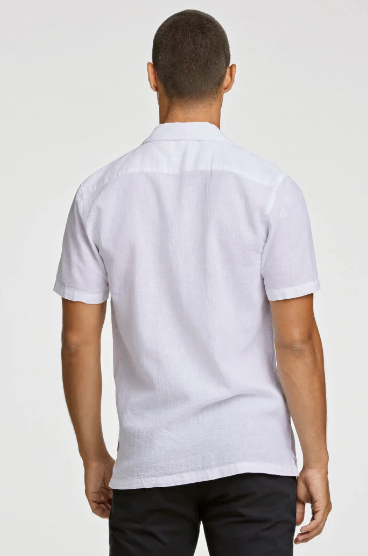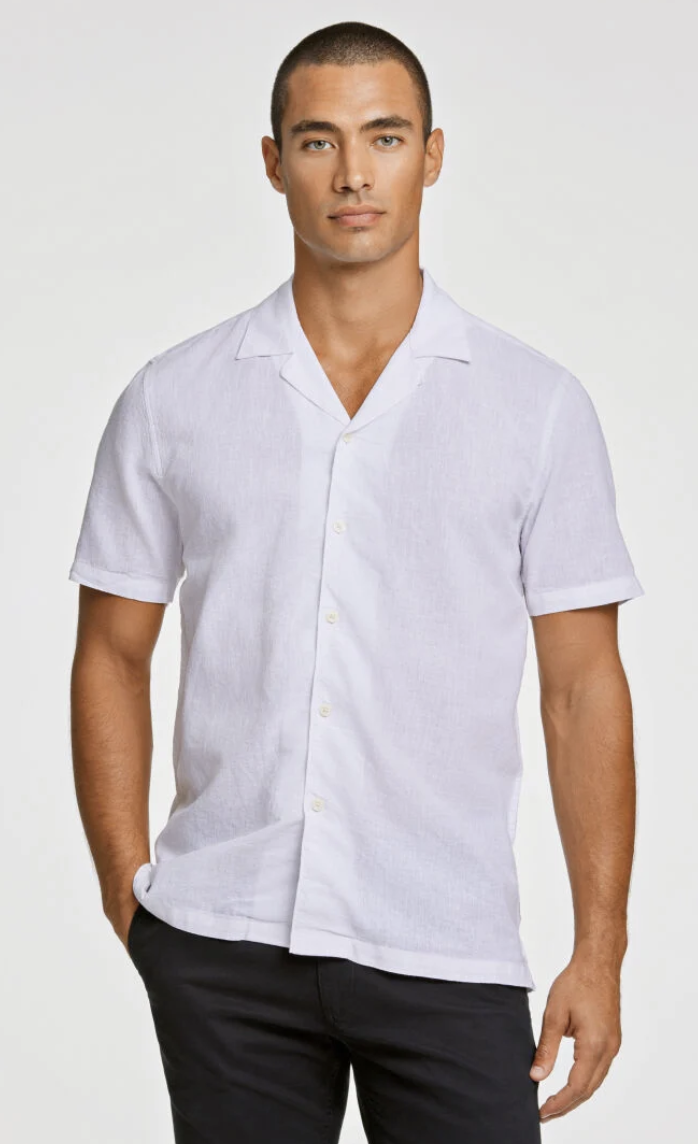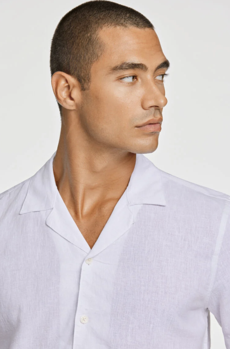 Kurzärmeliges Shirt mit Resortkragen und entspanntem, sommerlichem Flair. Gefertigt aus einer weichen, atmungsaktiven Mischung aus Leinen und Baumwolle, die dem Stoff eine natürliche Textur verleiht. Das klare, schlichte Design ist leicht zu kombinieren.