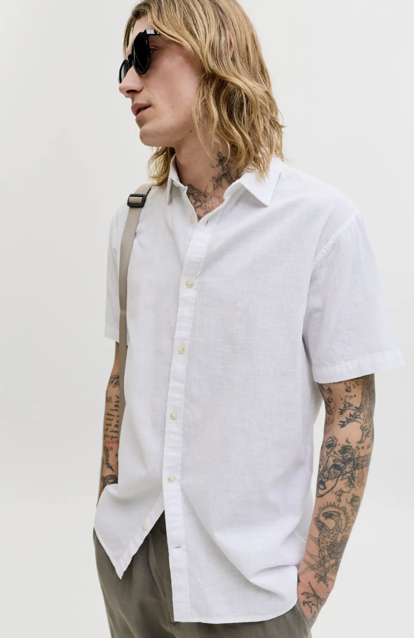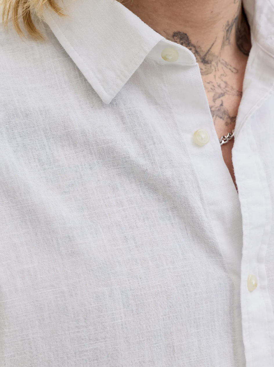 JJESUMMER LINEN BLEND SHIRT S/S SN White