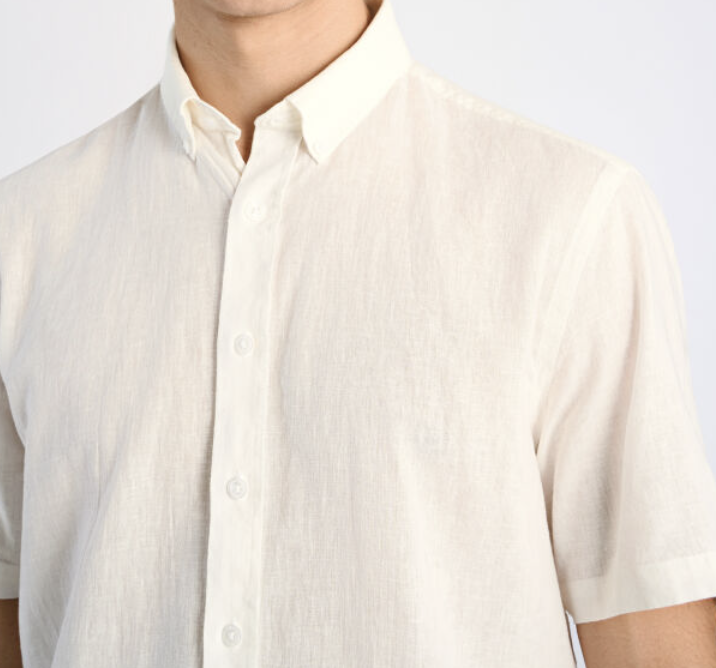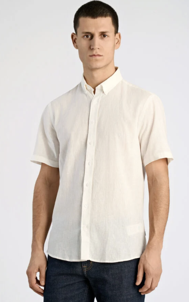 Kurzarmhemd von Lindbergh mit Button-Down-Kragen. Das Design des Hemdes ist schlicht und klassisch, das Material ist ein angenehmer Mix aus Leinen und Baumwolle.