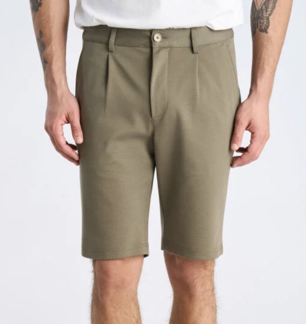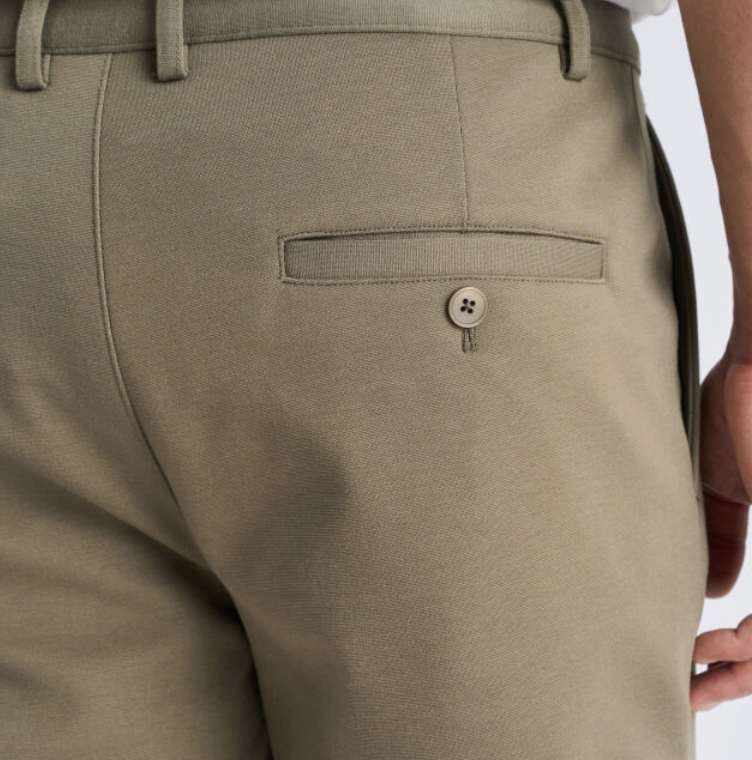 Performance-Shorts mit Stretch. Die Shorts sind in einem eleganten Design mit einer Bügelfalte vorne gefertigt. Es gibt zwei seitliche Eingrifftaschen und zwei Paspeltaschen hinten mit Knöpfen.