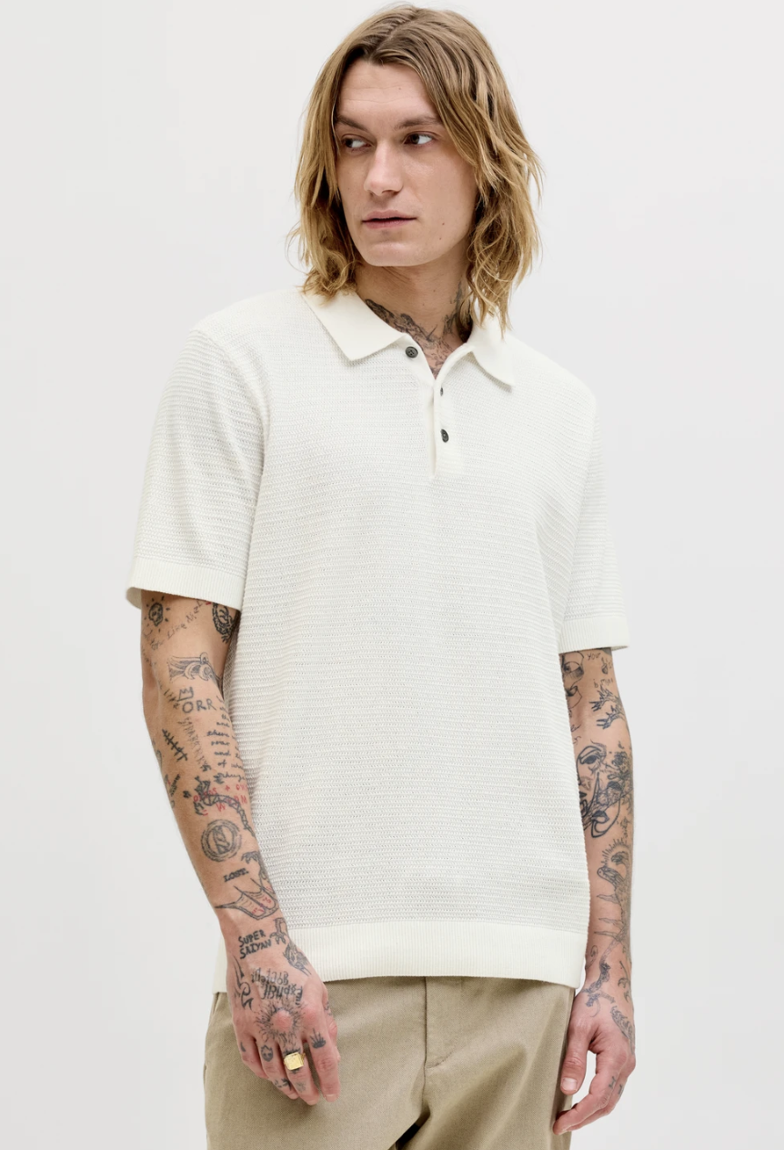 JPRBLURILEY KNIT POLO SS SN - Cloud Dancer